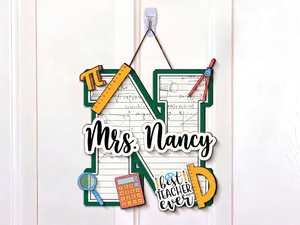 Introduce a unique vibe to your space with the “Personalized Best Teacher Ever Door Sign Custom Wood Initial Letter For Math Teacher Appreciation Gift For Teachers Classroom Door Decor”. This wooden piece is designed to catch the eye and fit perfectly on any door or wall, making it an instant standout in your decor.