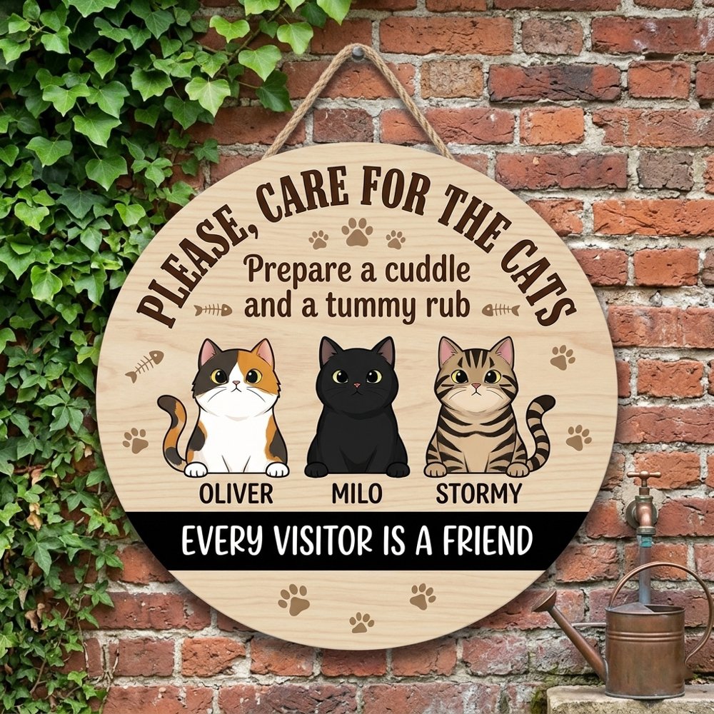 Personalized Every Visitor Is A Friend Wood Sign Custom Cat Names And Illustrations Wall Art Funny Please Care For The Cats Pet Owner Door Decor