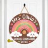 Personalized School Counselor Door Sign Custom Teacher Name Rainbow Office Decor Round Wooden Sign Appreciation Gift
