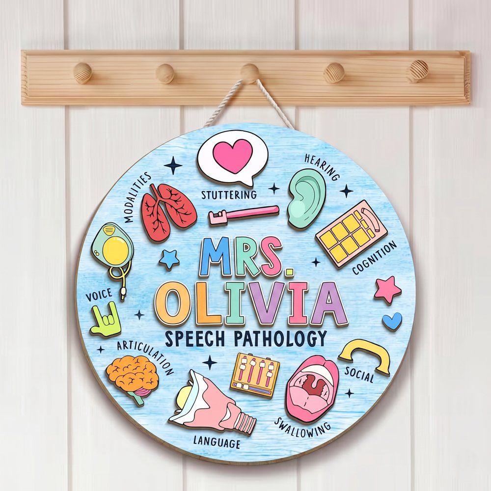 Personalized Speech Pathology Door Sign Custom Wooden Slp Name Plate Speech Language Pathologist Classroom Decor