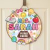 Personalized Teacher Classroom Sign Custom Name Wood Door Hanger With Crayons And Pencil Wooden Welcome Sign