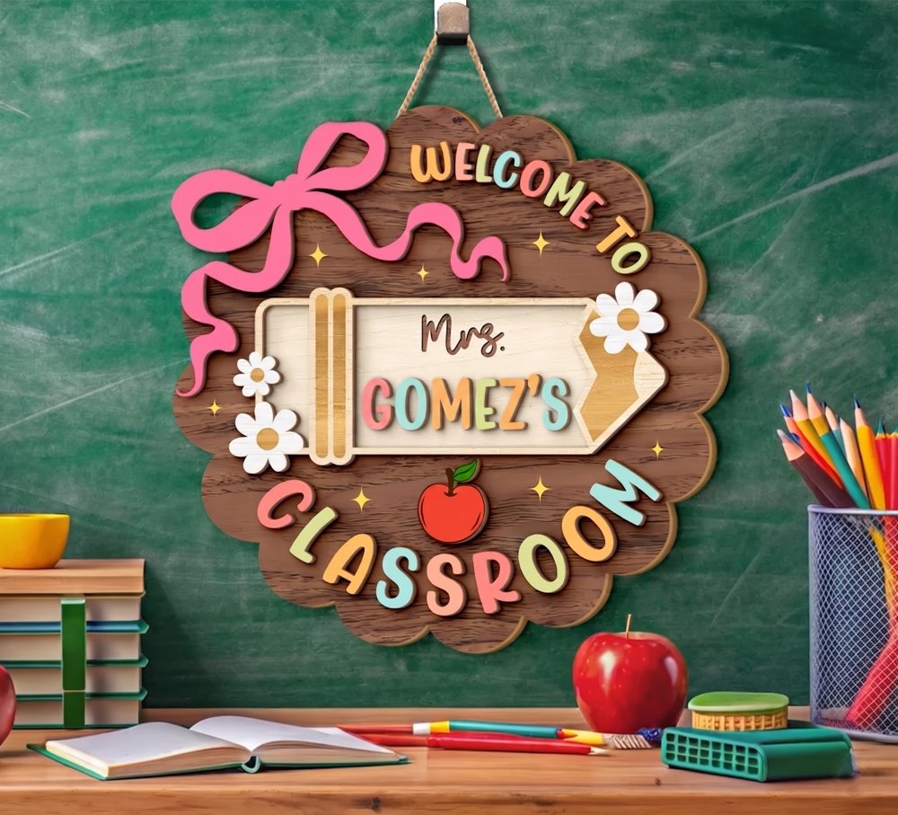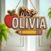 Personalized Teacher Name Classroom Sign Custom Wooden Pencil Door Hanger Welcome Sign Appreciation Gift