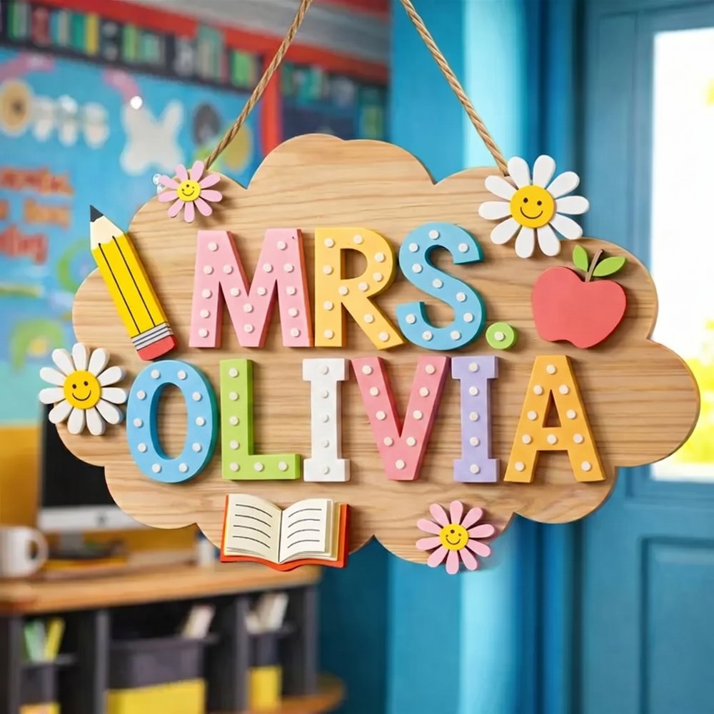 Introduce a unique vibe to your space with the “Personalized Teacher Sign Custom Polka Dot Classroom Door Decor Colorful Wooden Name Plate Elementary School Teacher Gift”. This wooden piece is designed to catch the eye and fit perfectly on any door or wall, making it an instant standout in your decor.