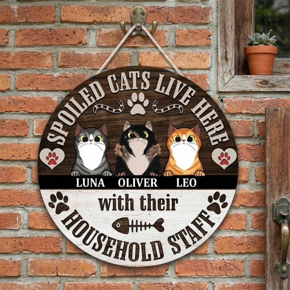 Spoiled Cats Live Here Wooden Sign, Personalized Cat Name Sign, Cat Lover Gift, Custom Pet Decor, Funny Cat Wall Art, Housewarming Gift
